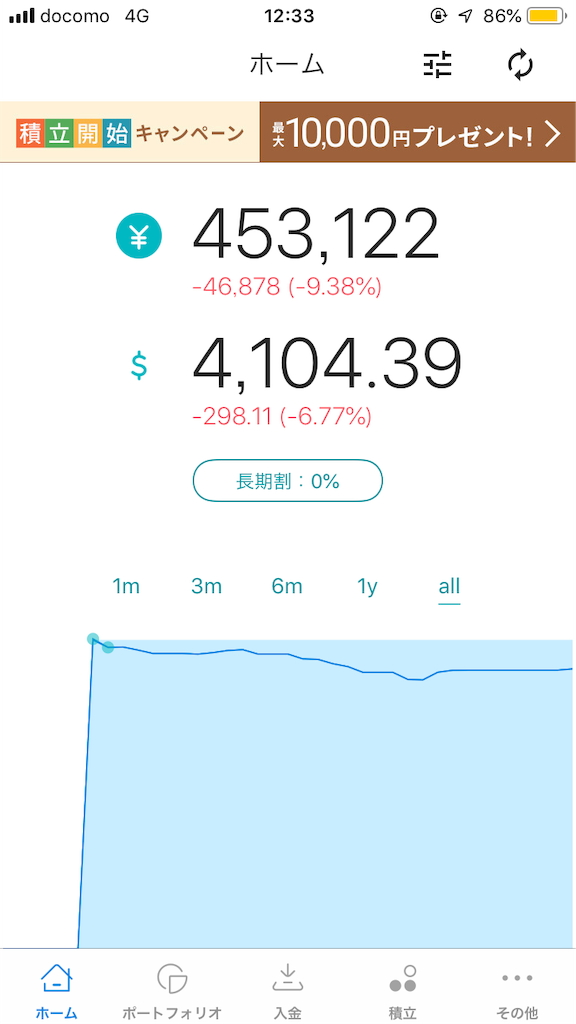それで投資の知識が全くなくてもAIが勝手に運用してくれるのは、忙しいサラリーマンや気軽に投資に触れてみたい!なんて方には良いんじゃないでしょうか。